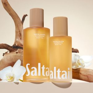 Our nourishing Santal Bloom body oil is formulated with a replenishing blend of oils including fermented saururus. kukui. cacay. moringa and squalane along with a biomimetic blend of plant actives and astaxanthin that absorb easily and leave skin dewy and glowing.